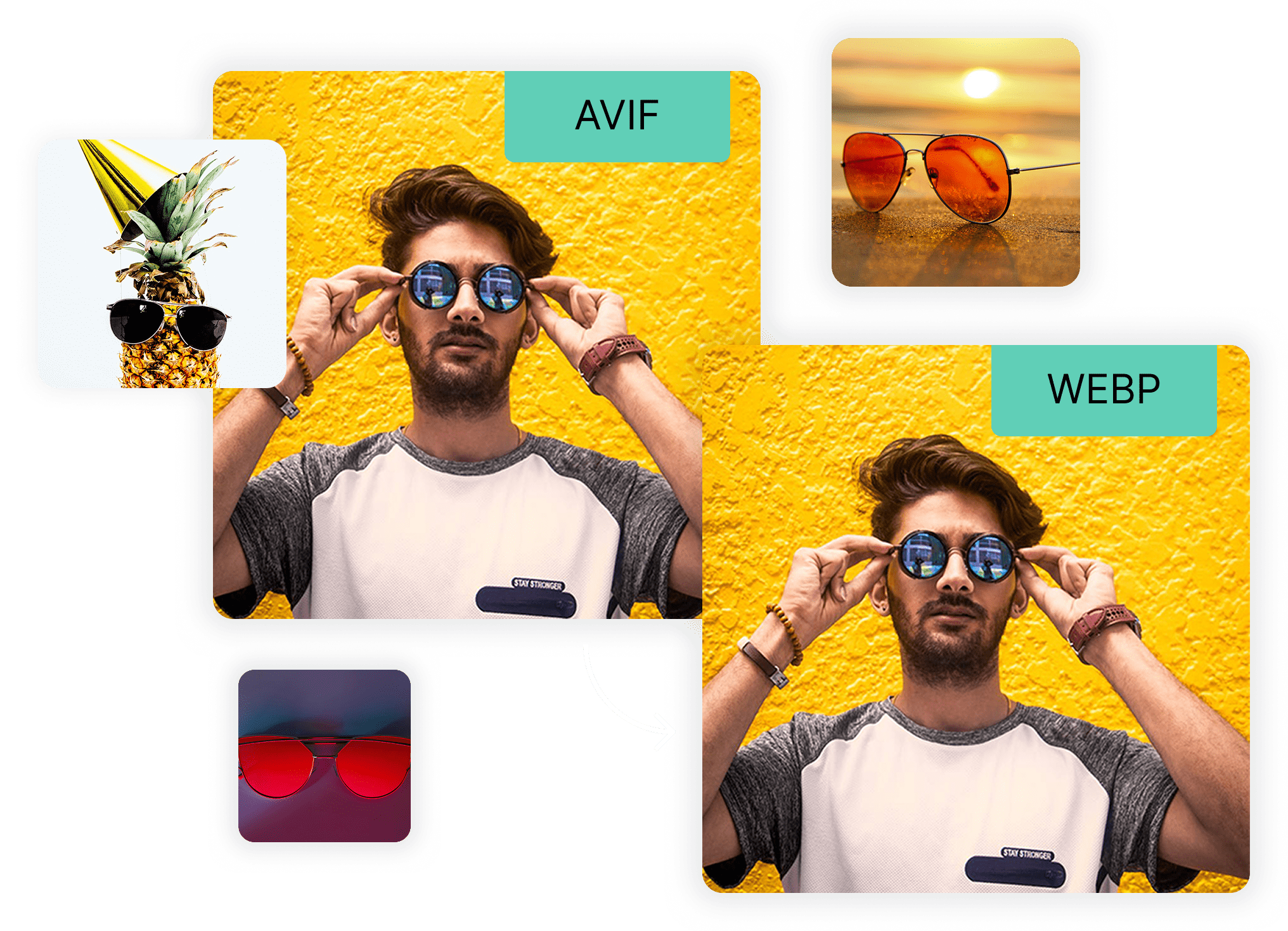 You can turn GIF to WEBP, JPG to AVIF, PNG to WEBP, or PNG to AVIF easily, and your page will always be optimized!