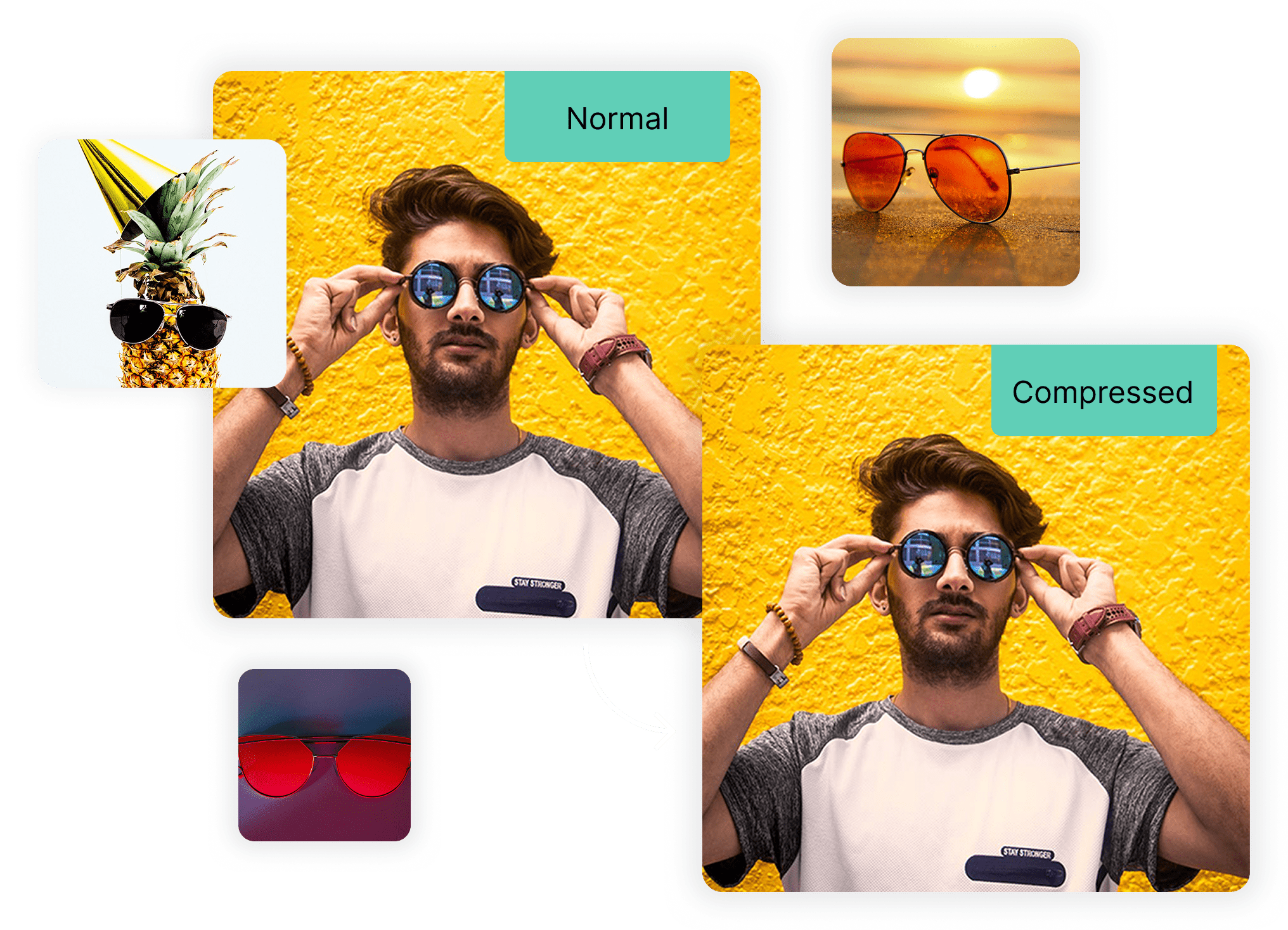 Easily compress images online instantly and effortlessly. No installation or plugins required. Simply drop your JPG, PSD, PNG, AVIF, TIFF, HEIC… images into our compressor, and receive your optimized files in seconds with no loss in quality.